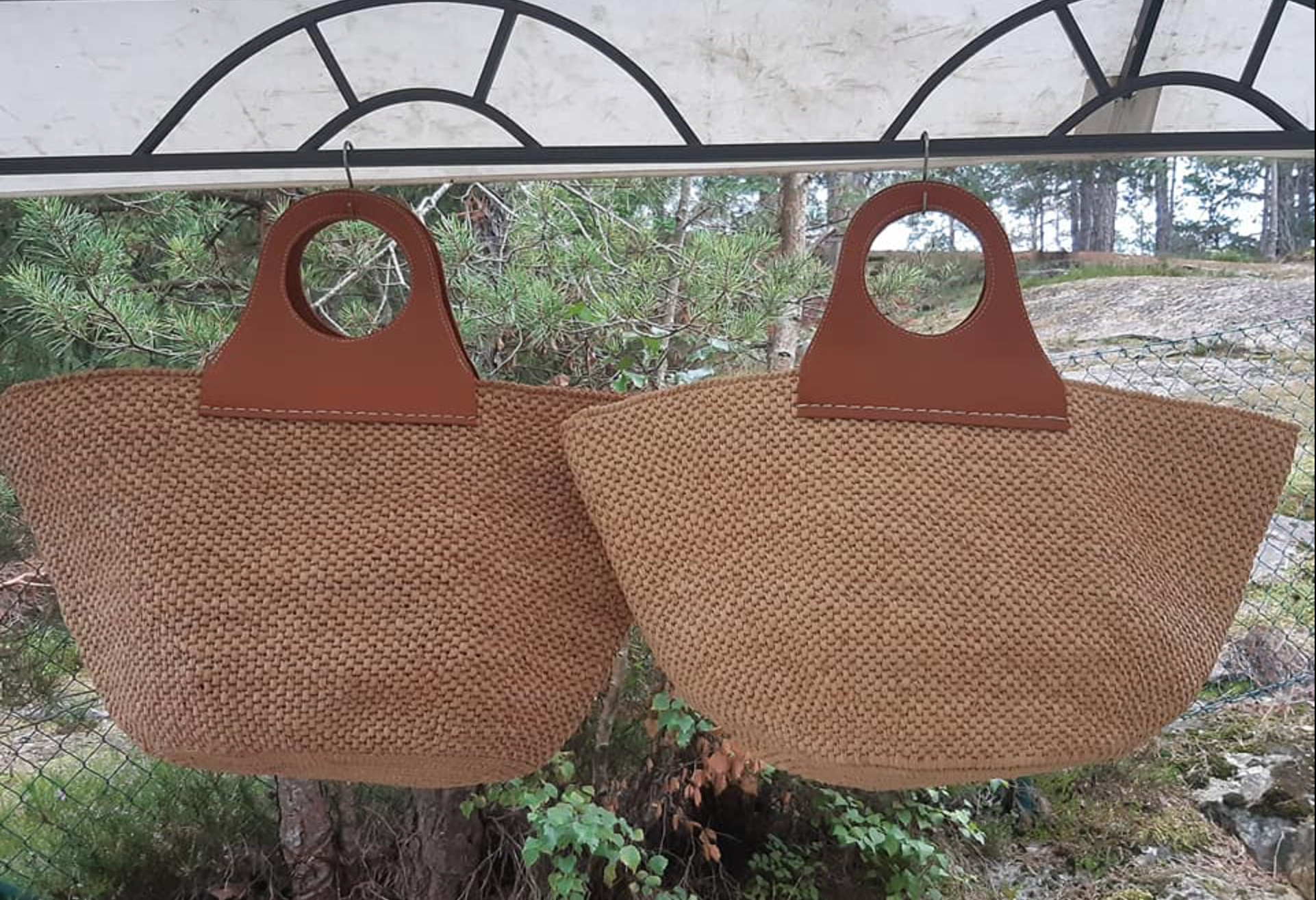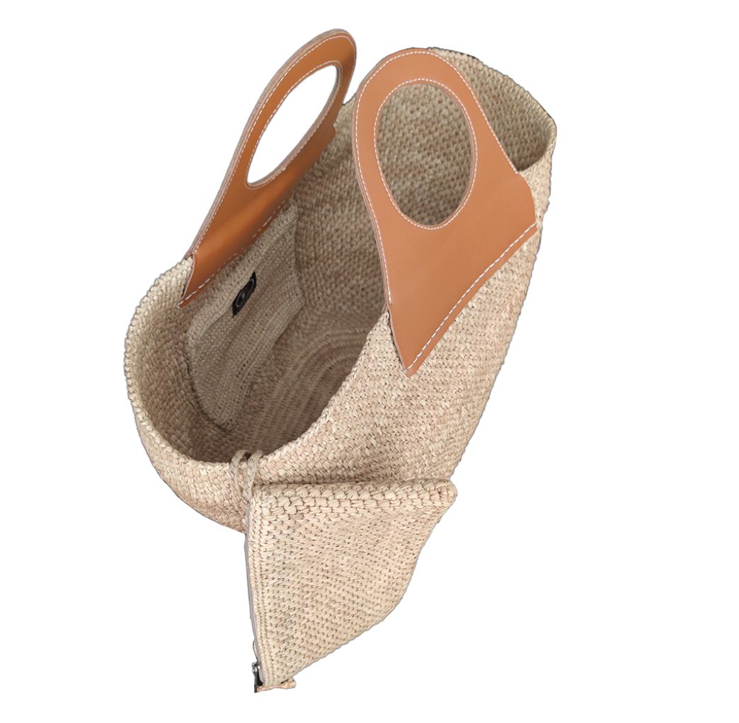 HERY handväska, virkad helt för hand med naturliga raffiafibrer.